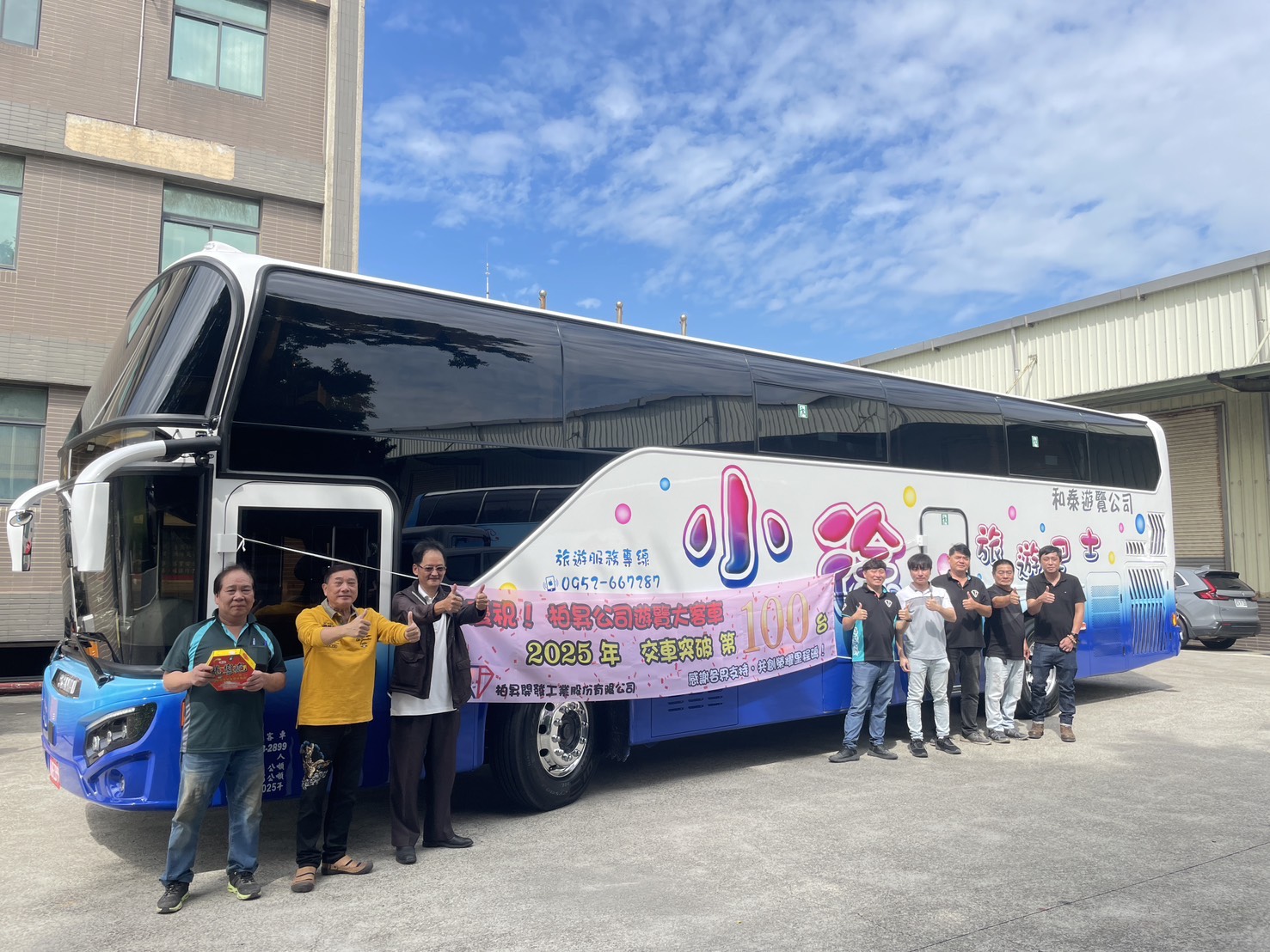 本公司2025年度交車達100台,特請客戶與本公司一起拍照,共同紀念!